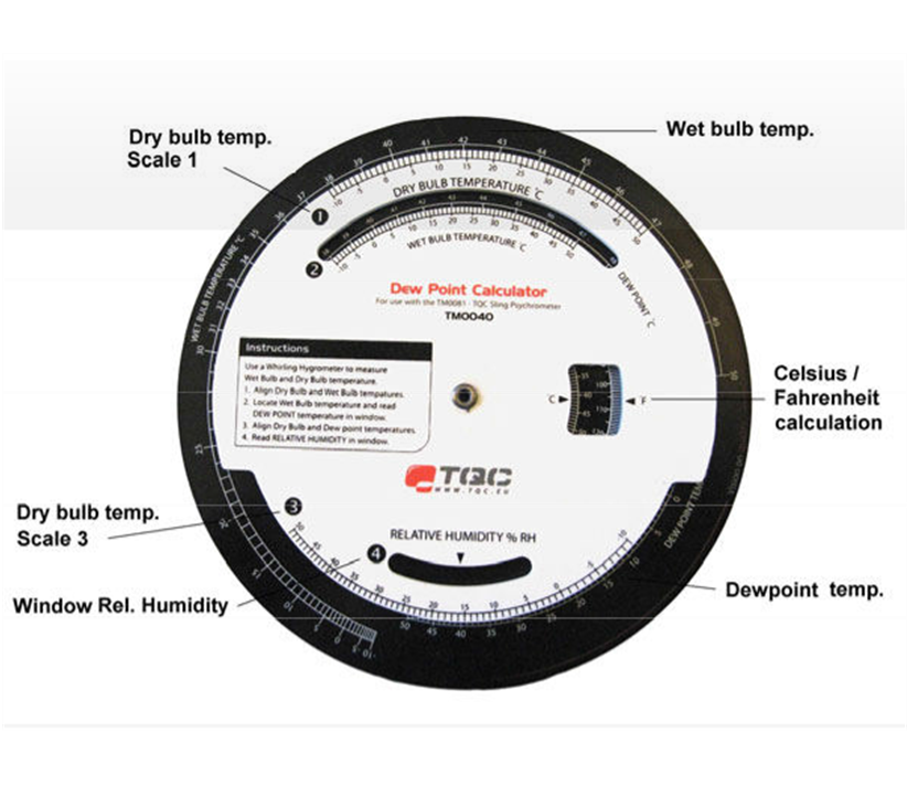 TQC Dew Point calculator is a handy tool to determine dew point temperature based upon the measurements from sling psychrometer . The measurement unit is available in Celsius and also Fahrenheit converter.